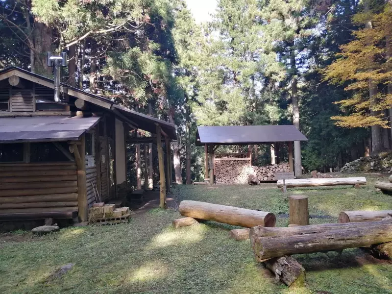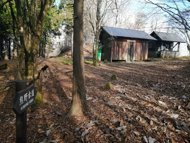 ▲伯母子峠にある小屋。野営できそうな平場や小屋は多い。