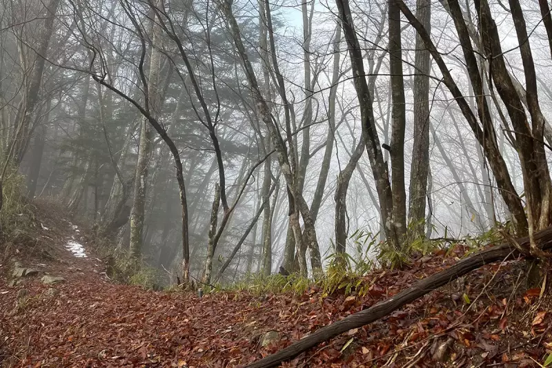 高鳥屋山は初心者程度の難易度で、登山らしいテクニックを存分に試せるコース。夏は熊笹の薮漕ぎがあったり、秋冬はふわふわの落ち葉の上を歩いたりします。細まった登山路や急坂が稀にありますが、それほどしつこくありません。歩いている場所の景色が常に美しいので、先に進むのが楽しくなる。そんな楽しい登山の典型になるでしょう。