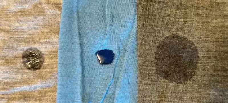 山旅の速乾メリノールTシャツが最も「すごい!」と感じてもらえるのが、発汗量が多いトレイルランニングです。このTシャツは汗をかいた時にすごい勢いで拡散するから、汗を吸った後に乾きが早いんです。山旅速乾メリノTシャツと某ブランドのメリノウールTシャツの拡散力の差を見てもらえれば一目瞭然です。
