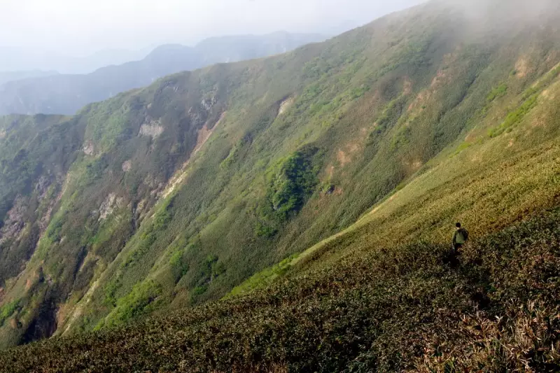 少し進み湯沢方面を振り返る、植生の変わるさまが良くわかります。