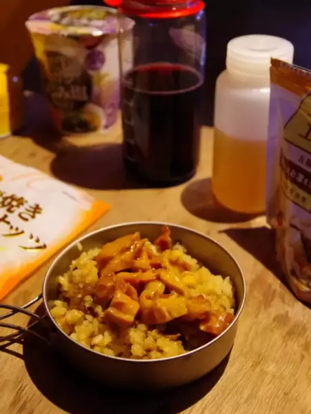 山飯から就寝までの寛ぎの時間を照らすのはHEXAR UL3&UL4。底部の強力なマグネットは山でも意外と役立ちます。広範囲を照らすので調理や片付けもはかどりますよ。