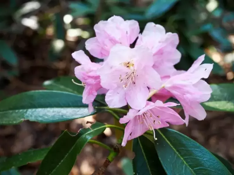 4月中旬になると、標高の低い乙女渓谷から順にシャクナゲの花が一斉に咲き乱れ、5月中旬になると山頂には花道のビクトリーロードができます。さまざまな花が咲いてますが、夏はササユリ、サラサドウダン、シモツケソウが咲きます。自然の摂理が整った里山らしく、花たちに心が和む華やかな登山道です。