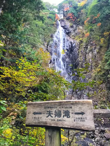 夫婦滝(標高1,280m)あたりが、折り返し地点になります。旧夫婦岩展望台は、岩場を少し登って行くとすぐあります。少し立ち寄ってみてはどうでしょうか。