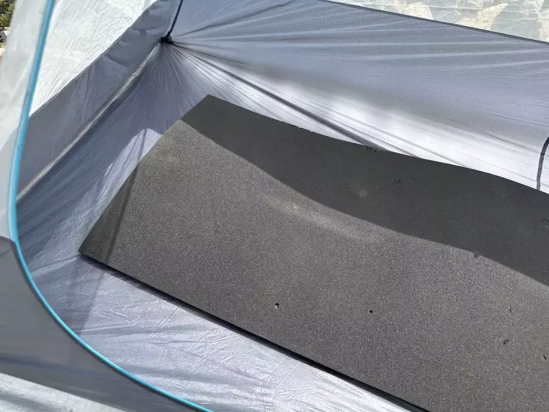 横幅50cm、長さ180cmのテントマットを敷いても、縦横に空間があり、荷物を置いておくことができる広さです。