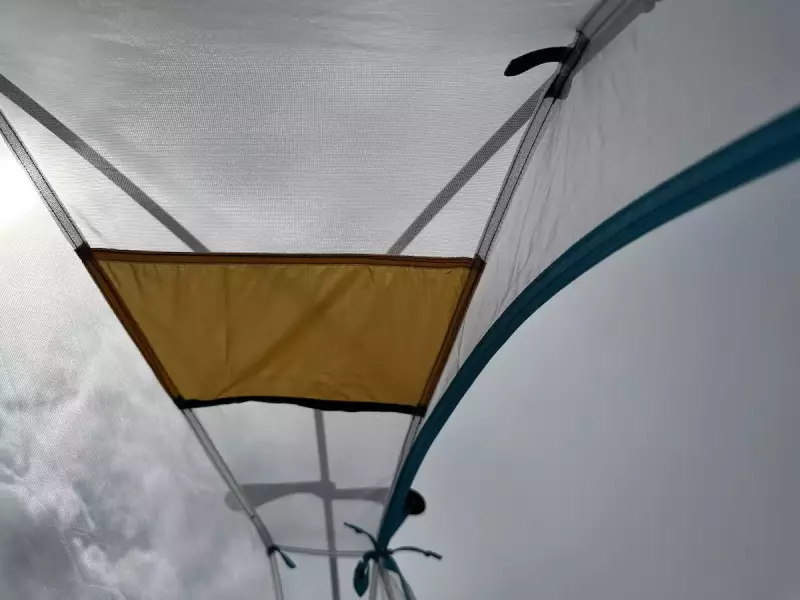 実際にNEMOホーネットエリートオズモ1Pを使って大天荘のテント場で就寝しましたが、強い風が吹くとインナーテント内に冷気が侵入してきます。通気性が高いことで熱い季節におけるテント泊はとても気持ちよく過ごすことができますし、結露も生じにくいメリットがありますが、気温が低くなるとシュラフの温度域、ダウンジャケットやダウンパンツの併用など防寒対策をしっかりしないと、寒くて途中目が覚めてしまうことも懸念材料に入れる必要があります。