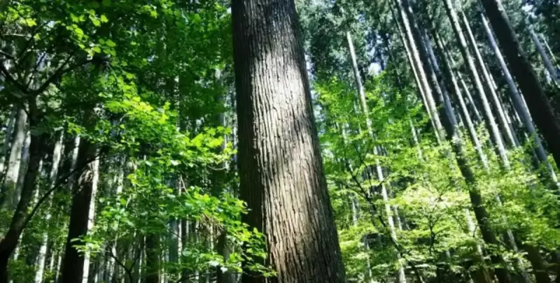 15丁目までは舗装路が続いており、そこから先は林道になります。沢の流れる音を聞きながら緩やかな坂をのぼるのは気持ちが良いものです。33丁目に「大杉広場」というスポットで休憩をするのがおすすめ。樹齢500年を超えるとされているダイナミックな杉の大木が待ち受けています。
