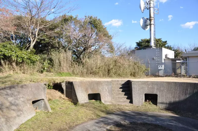 砲台山の正式名称は大塚山といい、昭和の初めに海軍がここで砲台を造ったことから砲台山と呼ばれるようになりました。遺稿の中央部には高角砲が据えられていたとされ、戦時の面影がしのばれます。