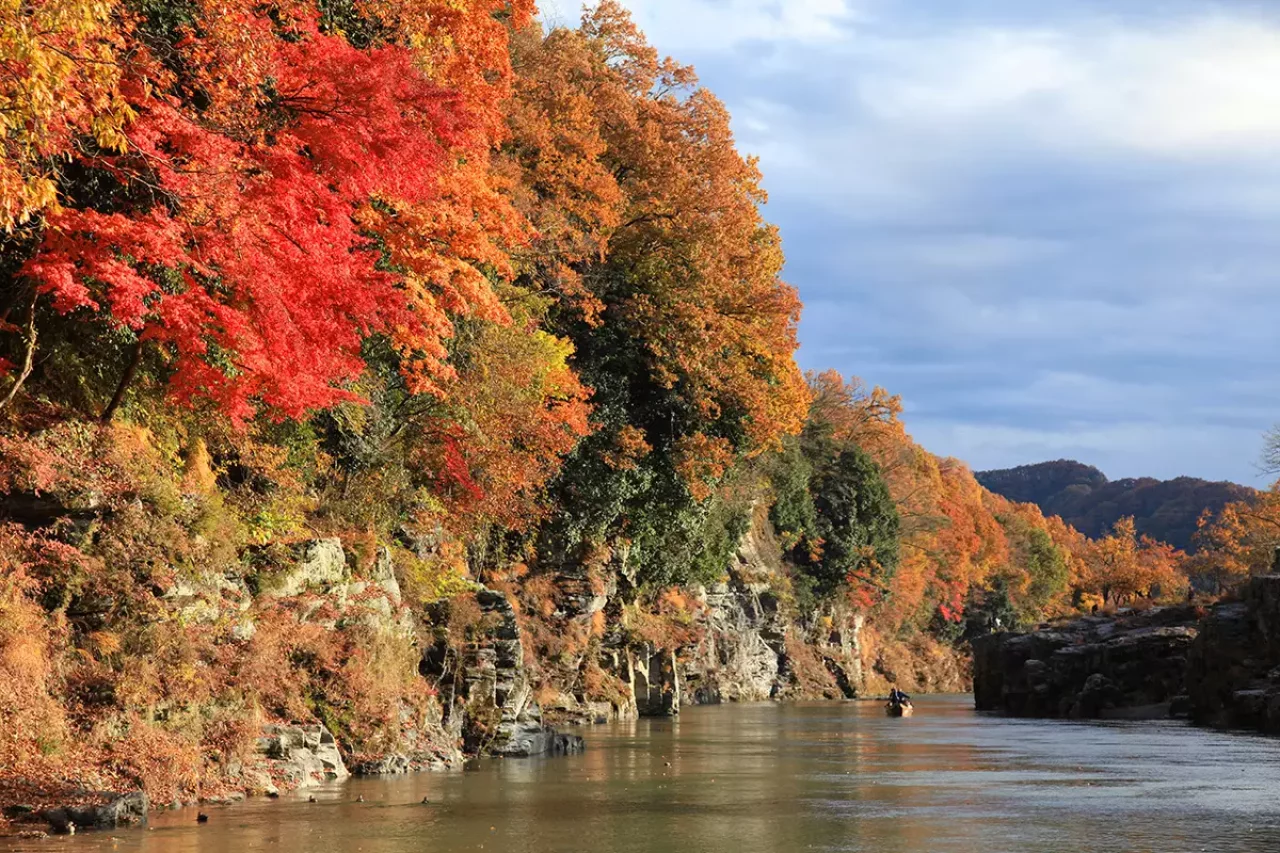 荒川上流部の渓谷で、全長は約6㎞。長瀞の有名観光スポットである岩畳が見られます。岩畳は、隆起した岩が畳を敷き詰めたかのように並んでいる国の特別天然記物です。荒川を挟んだ対岸には「秩父赤壁」と呼ばれる絶壁があり、自然のパワーを感じられます。