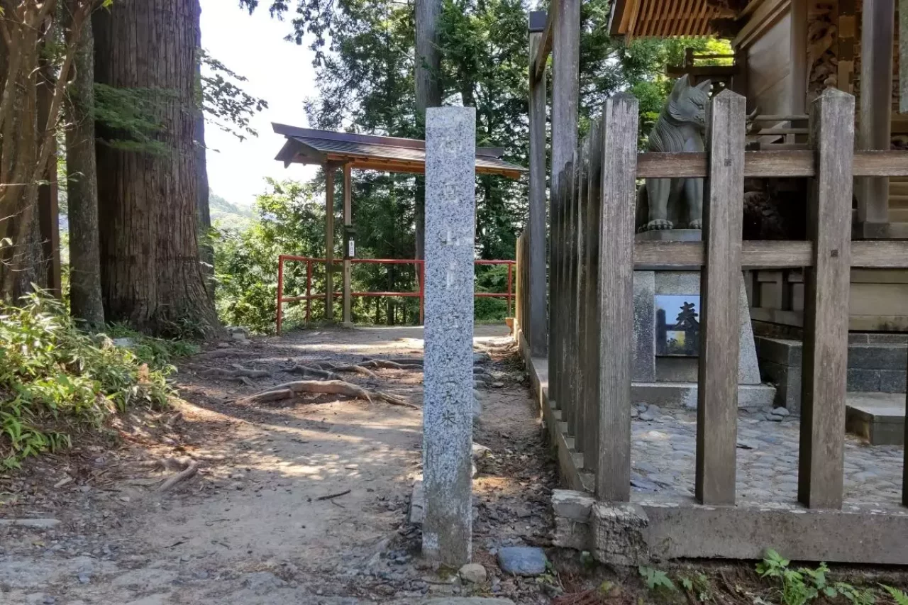 山頂ということもあり眺めも素晴らしく関東一円が見渡せます。ただ、山頂標識がある場所はわかりにくく、境内の奥にある大口真神社の横に建てられています。ぜひ探してみてください。なお、このあとに向かう長尾平へは境内から道が分岐しています。