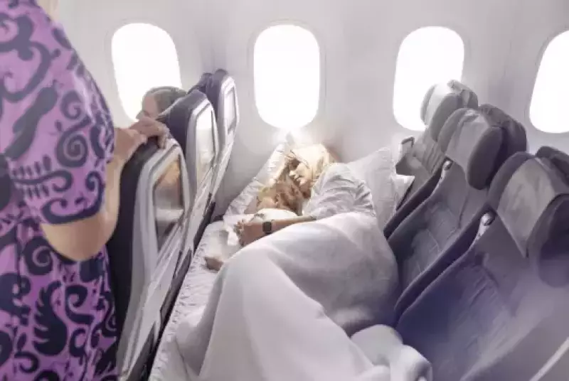 ニュージーランド航空は、世界で初めてエコノミー・シート 3 席を使った一体型シート、エコノミー「スカイカウチ」を導入した航空会社です。エコノミー「スカイカウチ」は、離陸後にソファに変身し、リラックスして手足を伸ばしたり、パートナーやお子様と空間を共有したり、ご自分だけのスペースとしてもご利用いただけます。