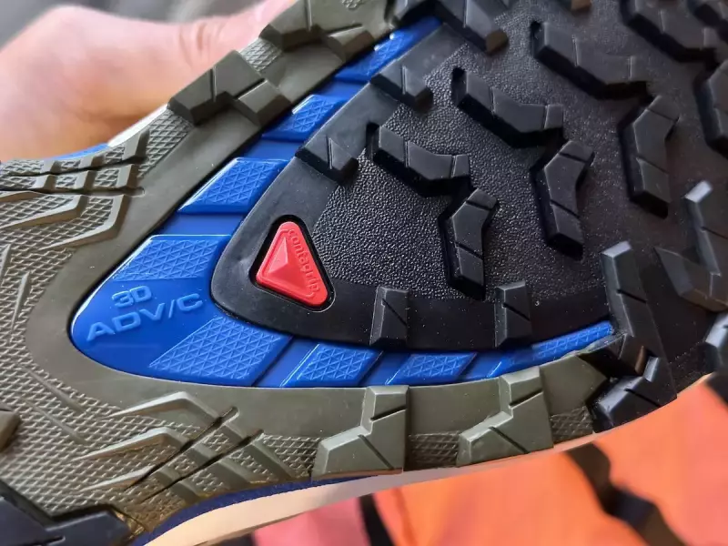 XA PRO 3D V9のソールパターンを見てわかるとおりブロックが細かく、あらゆる方向にグリップ力を発揮するように作られています。また溝が深すぎないので足裏の感覚を損なわず、足の指を使って歩く、走るが可能なモデルです。