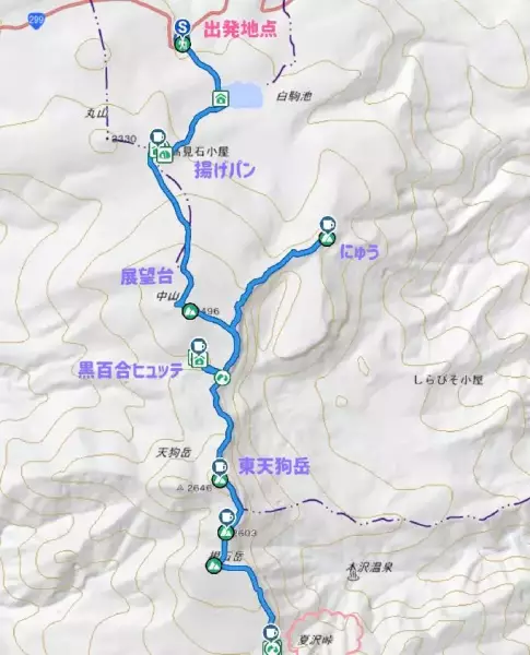 - 縦走1日目(8/31):白駒の池→高見石小屋→中山展望台→黒百合ヒュッテ→にゅう→ 黒百合ヒュッテ泊