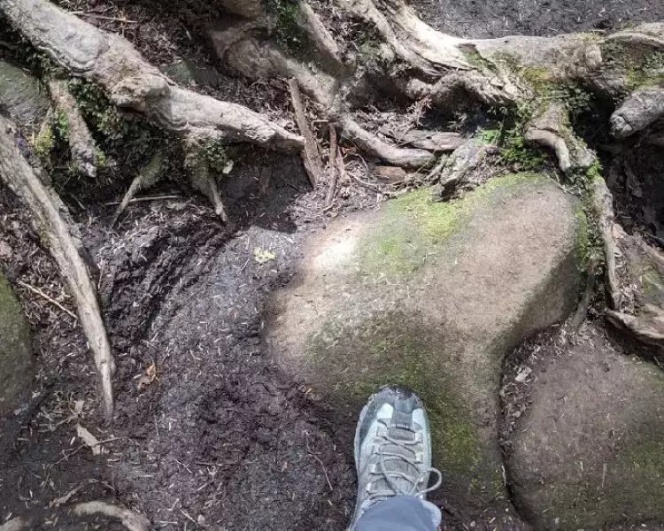 ちなみに登山道の様子ですが、土は湿っている箇所が多く石の表面はつるつるしています。