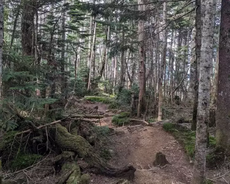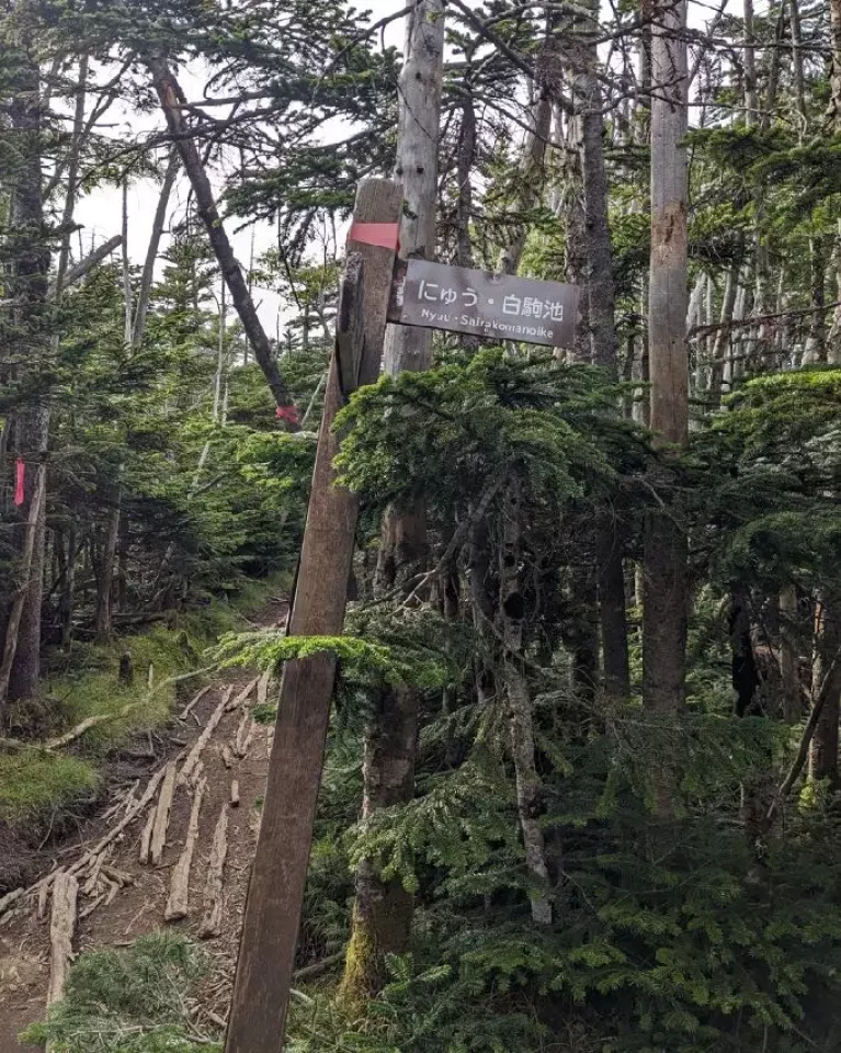 にゅうまでの登山道は短いアップダウンがあり、木の幹が露出している箇所がいくつかあるので足元には注意です。他は危ない箇所はありませんが時間がすでに15時で、平日だからか人通りが少なくなってきました。