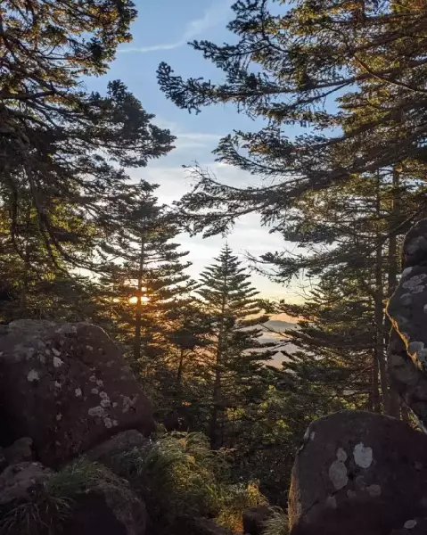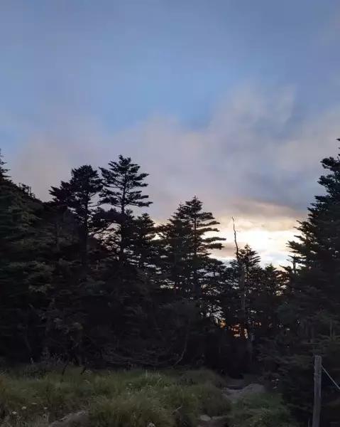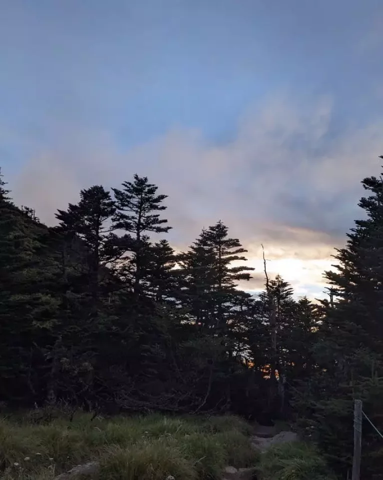 黒百合ヒュッテは森の中にあるので、夕日は木に隠れてしまいます。