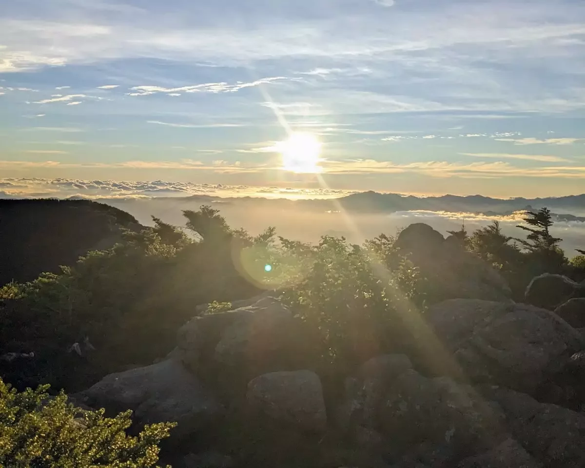 太陽や遠くの山々もしっかり見える位置まで登ってきました。
