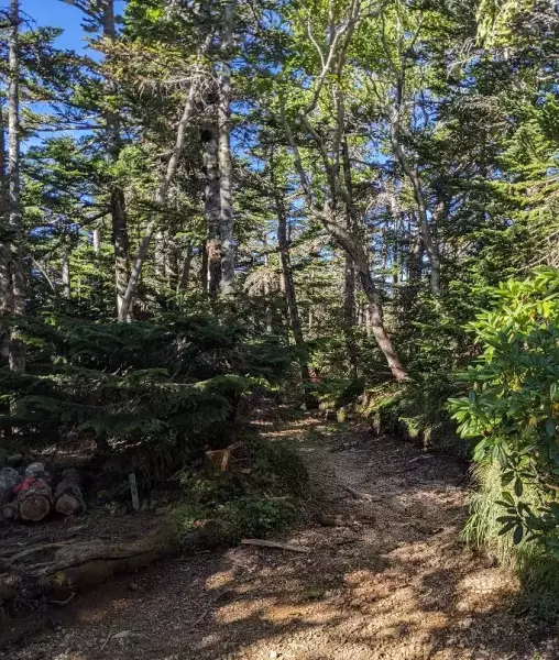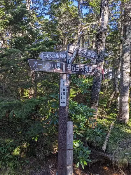 そして巨大な硫黄岳の前に箕冠山という山を経由して行くのですが、箕冠山がまさかの森の中にありました。