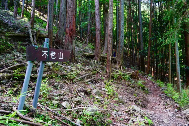 不老山はサンショウバラが咲く時期以外、登山者があまりいません。山全体が森閑とした雰囲気につつまれ、樹林帯の登山道には秘境感が漂います。