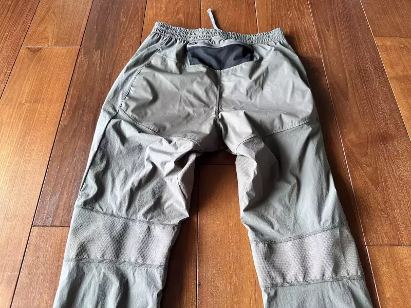 スカイトレイルジャケットにおいてはザックのショルダーハーネスに干渉しないようにデザインされたベンチレーターがよく効きます。パンツにおいては膝上の側面にメッシュ付きのベンチレーションが備えられています。ベンチレーションを解放したまま動いても風のバタつきを抑えています。