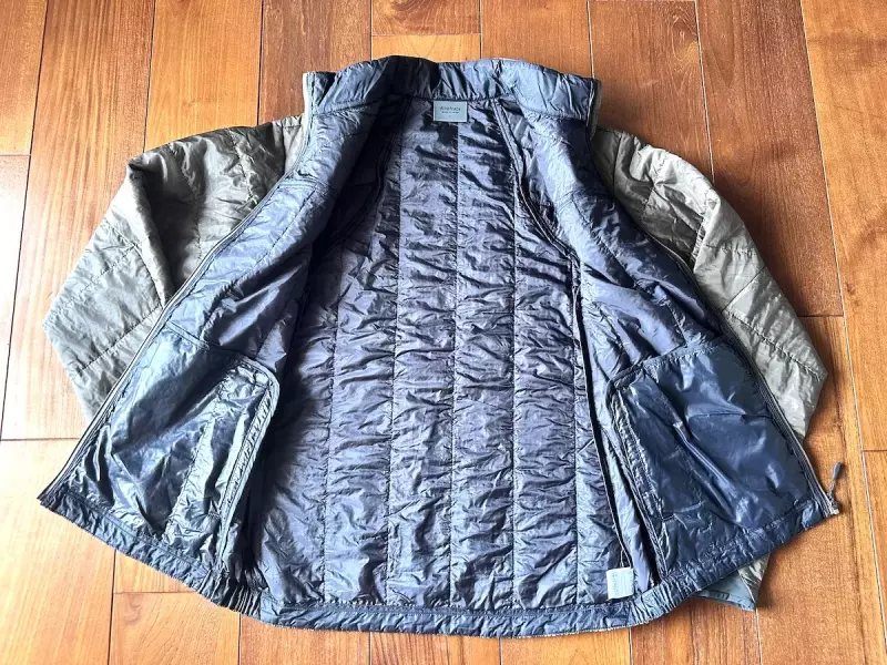 実際に雨に濡れてびちょびちょになったポリゴンULジャケットをギュッと絞って、その後保温着として着用することができた過去の事例からも優れた特徴とメリットのある素材だと考えます。