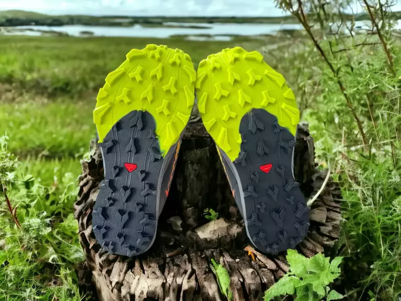 上の写真はサロモンのスピードクロス6のアウトソールですが、Y字形状を継承しており、とにかく滑らないグリップ力は健在です。サンダークロスのほうがラグの数は多く、間隔が狭いのでスピードを出して走った時に安心感がありました。