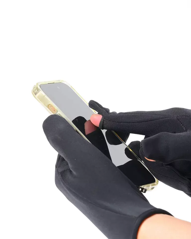 山旅の指穴フリースグローブは手首を温めることができる以外に、人差し指と親指を手袋から出すことができ、手袋をした状態でスマートフォンを操作することができます。助けを呼ぶ時、場所を確認する時にとても便利な手袋です。