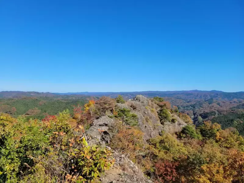 紅葉に彩られた袋田の滝と、茨城のジャンダルムと呼ばれるやせ尾根の岩稜から見る全方位パノラマの絶景。