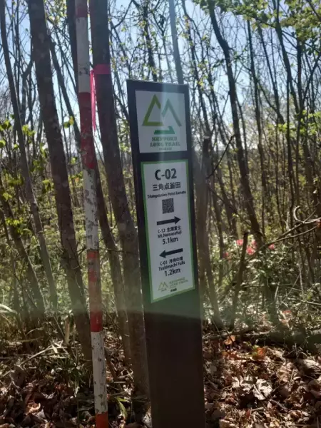かなり長い急な坂ですから注意しましょう。登り返してピークに出れば立神山。眺望はありませんが三等三角点が設置されてます。