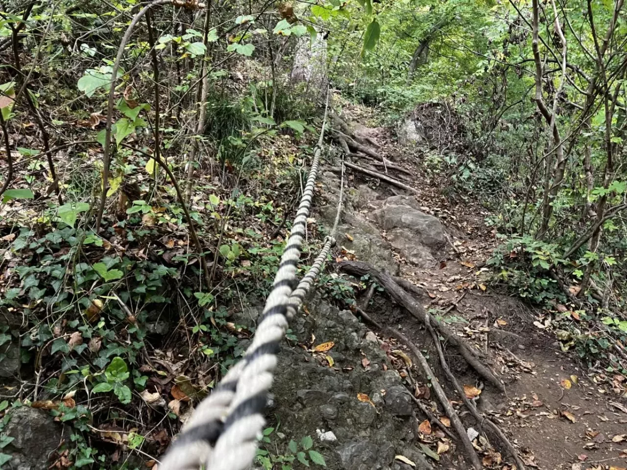 岩場の急登になりますが、鎖&ロープが張られていたり岩自体も凹凸があって比較的登りやすい岩場と思います。