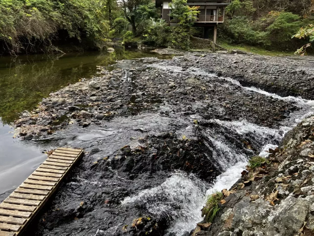 渡渉地点に出ます。ここは袋田の滝の上流になるところですが、両岸に長靴がおいてありますので借りて渡ることもできます。