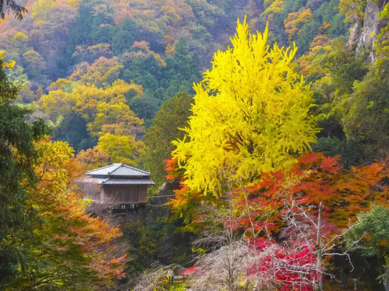 江戸時代には葛飾北斎が訪れて版画にした奇岩上の清心亭や、浄因寺と険しい断崖とのコラボレーションはまさに絶景。また、山頂の見晴台から見渡せる足尾山塊や上州の山々、関東平野の景観も見事で、特に秋は美しく、紅葉の名所として知られていす。