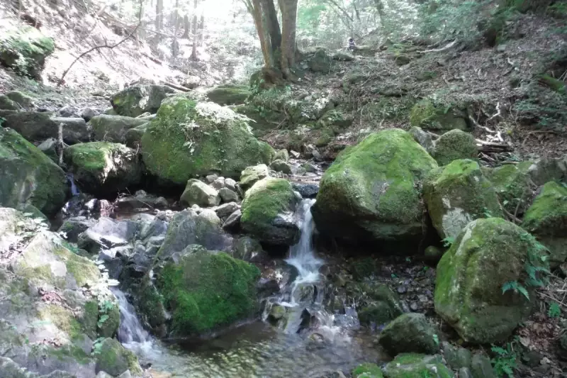 道の駅かつらを起点に東登山口~御前山~西登山口とまわって道の駅に戻る、初心者向けの周回コースを紹介します。コースタイムは短いですが、途中、鐘つき堂跡や藤倉の滝などを通り、子供連れの方にも楽しめるコースです。道の駅かつらの奥にあるふれあい広場駐車場やトイレが利用できます。