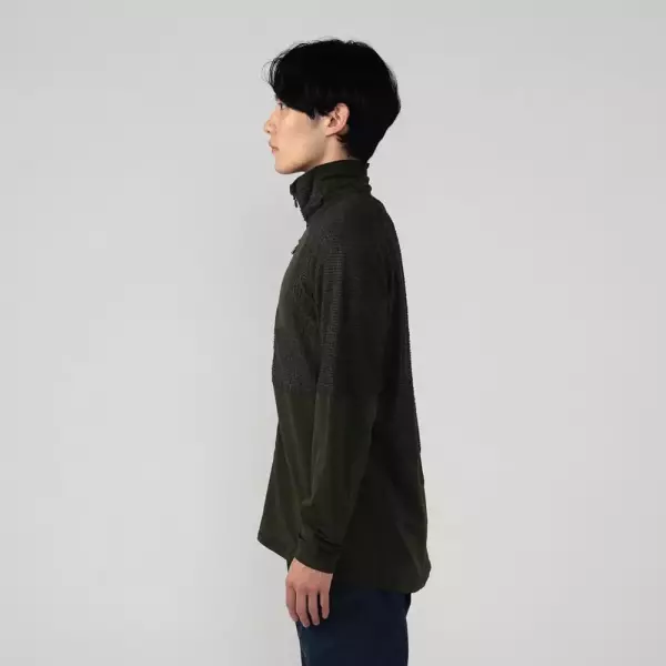 保温が必要な腹部より上にはアルファダイレクト90を配し、汗をかく可能性の高い脇から袖、腹部にはパワードライを使用し、ミドルレイヤーとして効果的に機能が働くようにデザインされたミドルレイヤーです。非常に軽量で動きやすい特徴があります。化繊インサレーションとフリースの良さを1つで実感できるアイテムです。