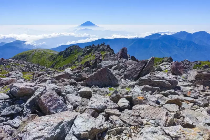 前岳は南アルプスにある荒川三山のひとつです。アクセスが悪く日帰りが難しいため、2泊3日や3泊4日など山小屋に宿泊して楽しむとよいでしょう。荒川三山である中岳や悪沢岳とともにめぐるコースが人気で、登山中級者~上級者におすすめの山です。