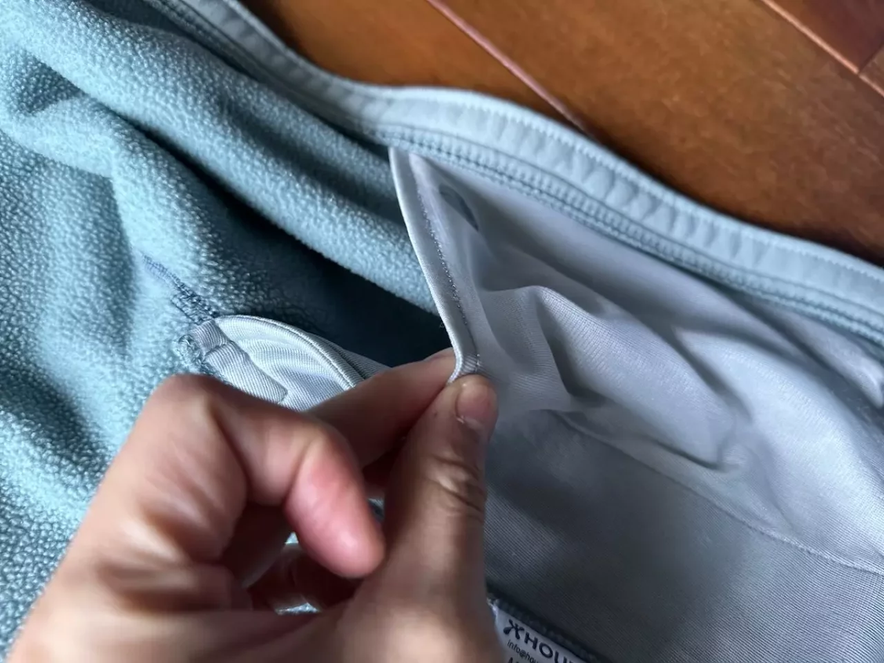 また内側にはハンドウォーマーポケットを縫い合わせた結果生まれたポケットが備わっているので、この場所にグローブなどを入れて温めています。
