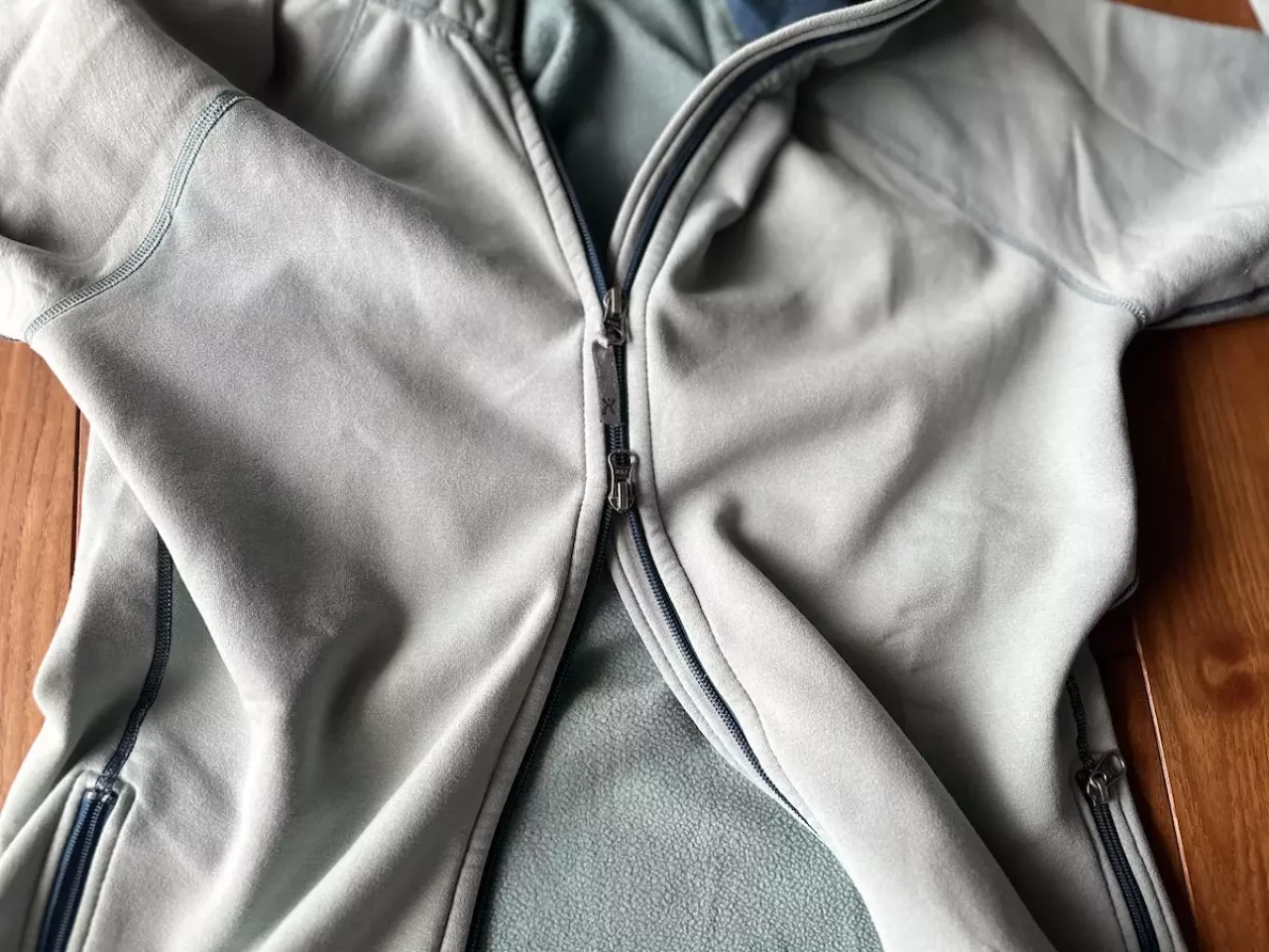 着用していて他のフリースと異なってとても良いと思うのは、1つはダブルジッパーによる体温調整、もう1つはサムホール付きで袖口からの冷気を遮断ししっかりと手首を温めてくれる機能です。寒くなればなるほどこの2つの機能はとても重宝します。