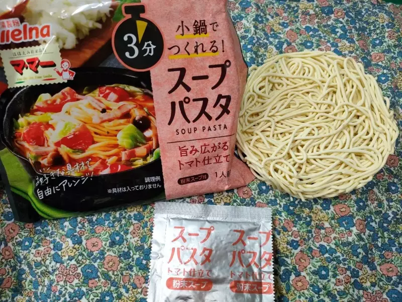 「マ・マー スープパスタ トマト仕立て」を使います。