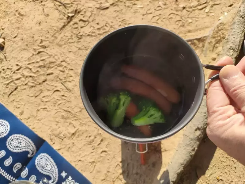●ジェットボイルなどクッカーで調理すると後でバーナー部分やガス缶などを収納するためにしっかりお掃除しないといけません。でも「シリコーン保存袋」の中で味付けをするのでクッカーは殆ど汚れません。お掃除することなくコーヒー用のお湯だってすぐに沸かせます。