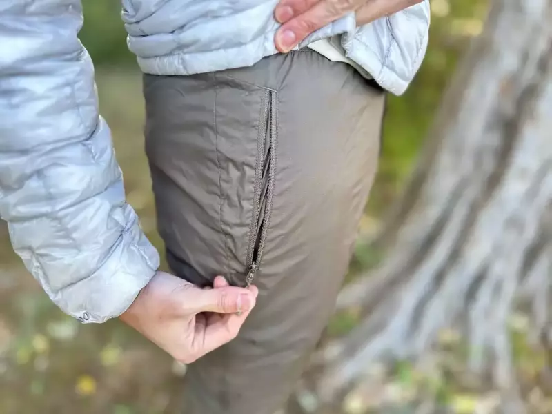 モンベルのインシュレーションパンツに共通したデザインの一つにポケットがあります。スペリオダウンパンツにもU.L.サーマラップパンツにもジッパー付きのハンドウォーマーポケットが備わっています。