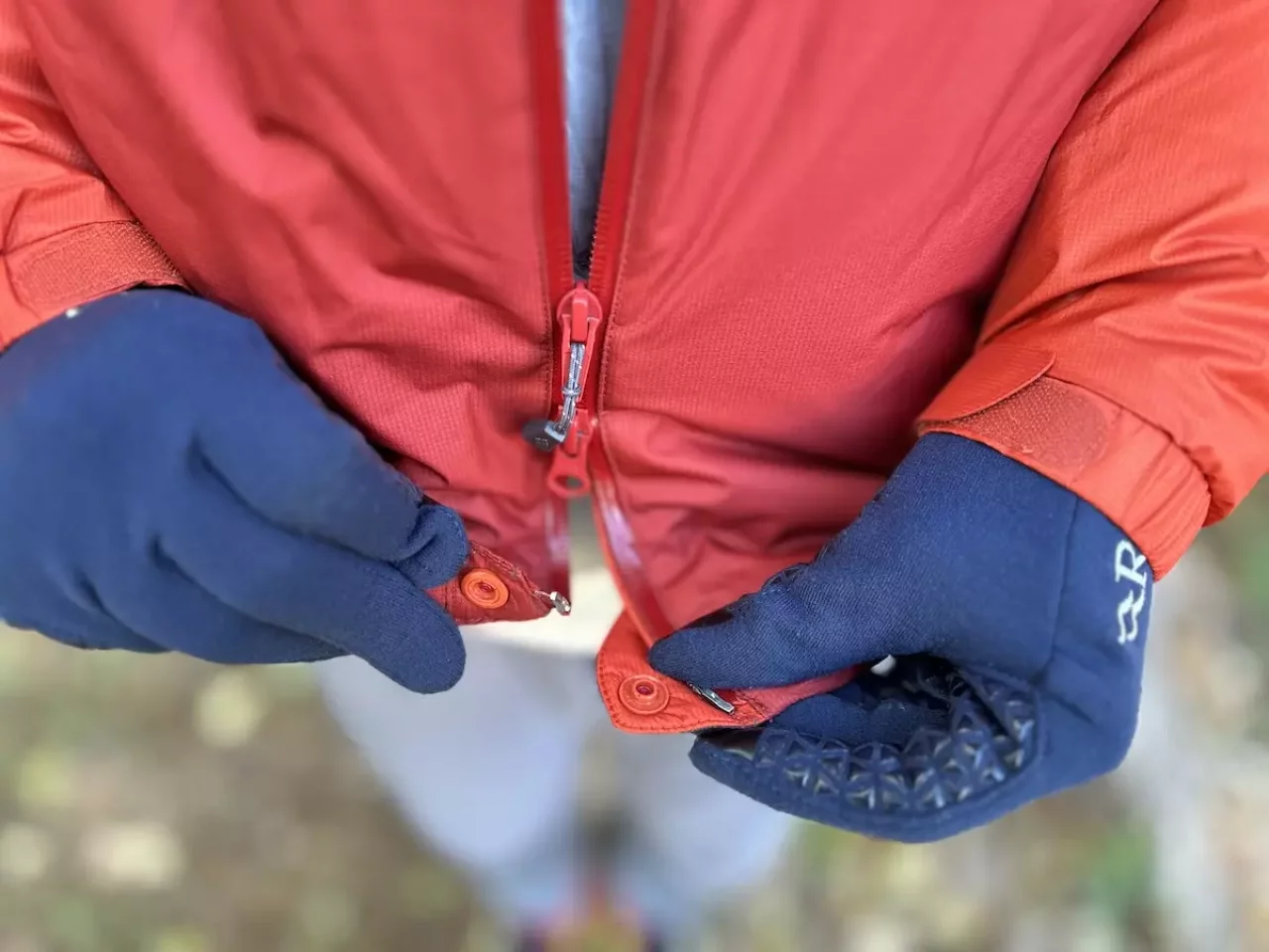 裾部分のフィット調整は裾の中に内蔵されたコードロックのボタンを押しながら引っ張る必要があり、両手を使う必要があります。またグローブをしたままだとコードロックのありかを見つけづらく、またポケットの中にグローブをした状態でドローコードの先端を見つけづらいため、個人的にはコードは外に出ている方が使いやすいと感じます。