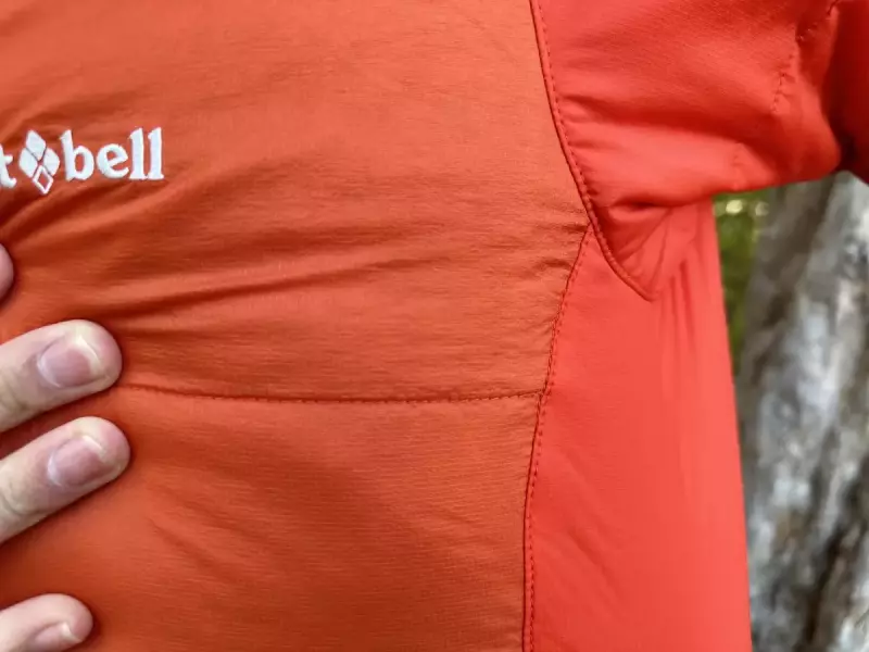 12デニールのバリスティックエアライトが使用されている身頃部分は透湿性を高めており蒸れを軽減します。脇・肩・腕には15デニールのバリスティックエアライトで、この素材は優れたストレッチ性を備えており、非常に動きやすくストックワーク、手を上げるなどのクライミングシーンにおいて突っ張り感がほとんどありません。伸縮率は125%とされています。