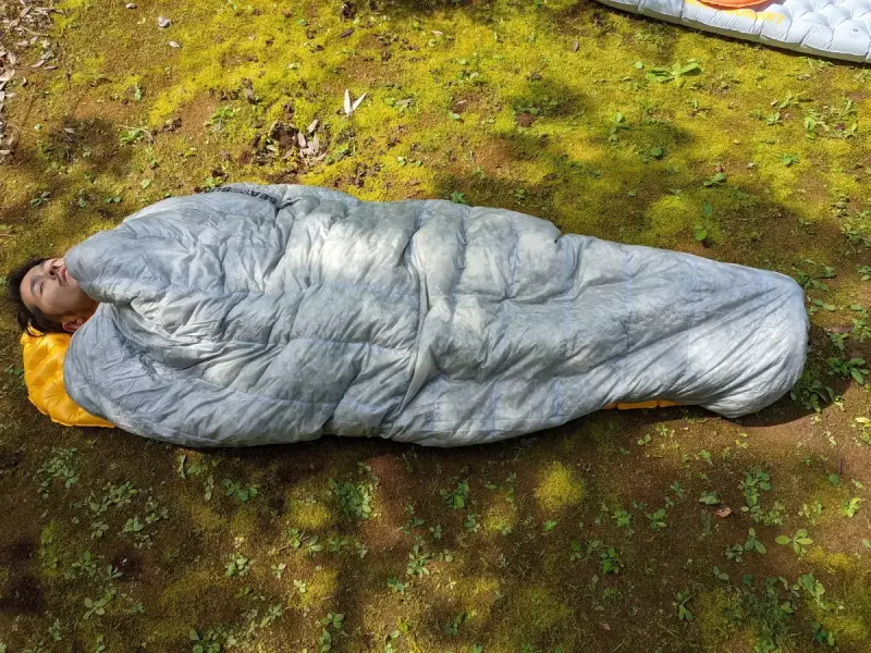 最も軽量な125gのマミーテーパードは足に向かって細くなるタイプで、今回紹介する130gのスタンダードは筒状のシンプルな形状です。