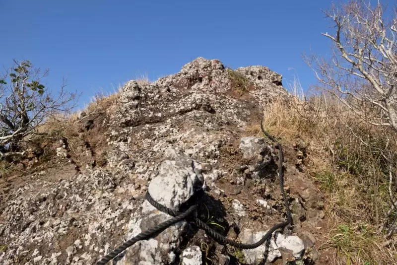 分岐からは、すぐに男山山頂になりますが山頂直下の急登が待ち構えています。設置されているロープを使いながら、登り切って男山登頂となります。