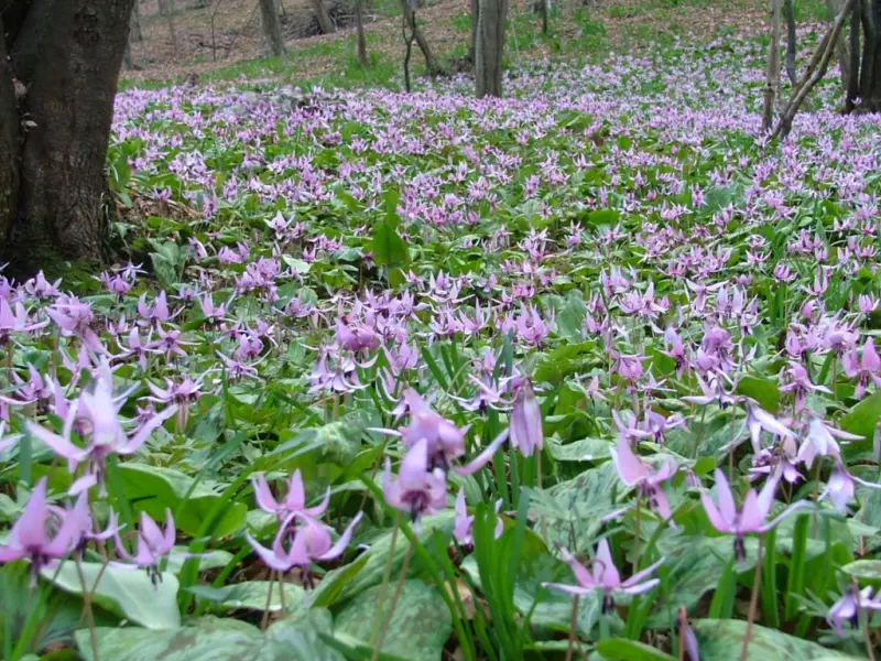 途中カタクリの群生地である「カタクリの園」や「カタクリの里」を通るので、3月下旬の開花期に行くのがおすすめです。斜面いっぱいに咲いた薄紫色の可憐なカタクリの花が見られます。