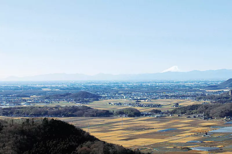 山頂からは、筑波山、日光連山、那須の山々が一望でき、冬季は東京スカイツリーや富士山まで見えることも。