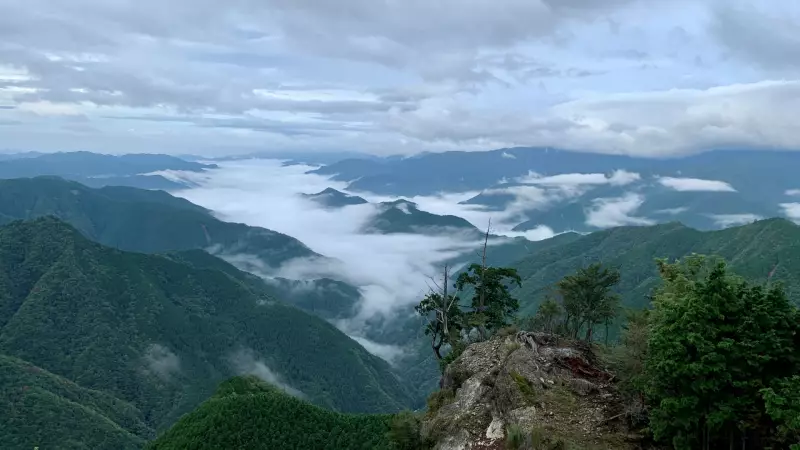 日出が岳の展望台からは全方位のパノラマビューが広がり、尾鷲湾や条件が良ければ富士山まで見ることができます。南西には大蛇嵓(だいじゃぐら)という断崖絶壁の上に突き出た巨岩があり、ここからの眺望も大台ヶ原山の魅力となっています。