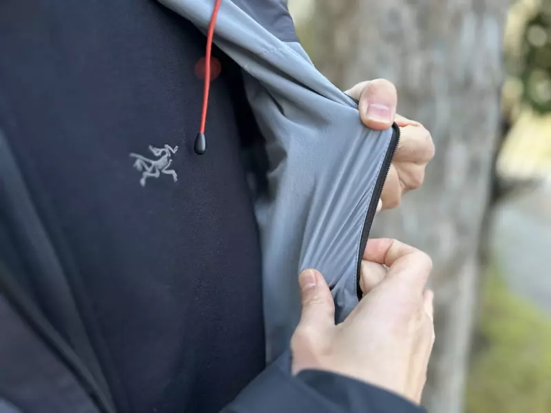 左右には手首までもゆうゆうに入れることができる大きなハンドウォーマーポケットが備えられています。このポケットは止水ジッパーで閉じることができるので、中に濡らしたくないものを収納しておくのにも便利です。