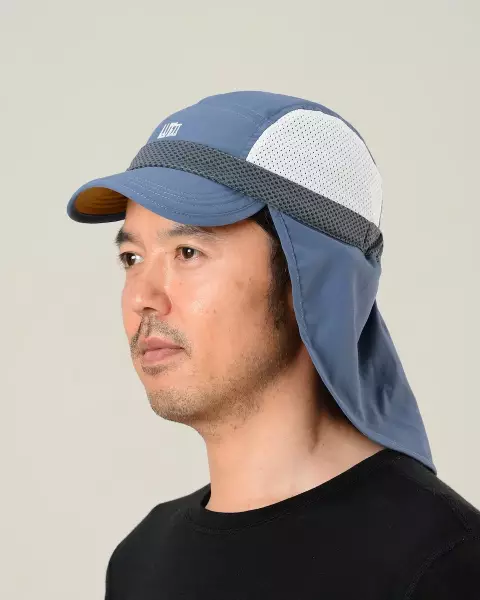 このサンシェードは登山をしていて耳や首の後ろを強い紫外線から守ることができるようにデザインしています。後頭部にはゴムバンドがついているので優しく頭にフィットします。様々なキャップに取り付けることができます。