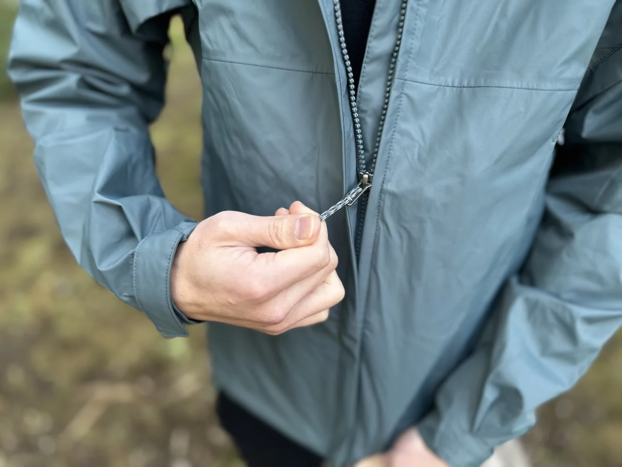 良し悪しの面で言うと、レントシェル3L・ジャケットで使用されているフロントジッパーは止水ジッパーではないので、強い風に叩かれた時にフロントジッパーから雨が入ってこないかが心配です。しかしながらフロントジッパーは非常に柔らかく開け閉めがしやすいメリットがあります。対してグラナイト・クレスト・レイン・ジャケットはジッパーが少し硬い止水ファスナーを使用しています。なので開け閉めする時に少し硬さを感じます。現在YKKからもっと柔らかく開け閉めができる止水ファスナーがあるはずなのですが、それを採用すれば良いのにと感じます。