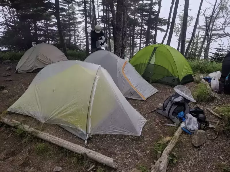 - テント場から山小屋(トイレ)までの距離